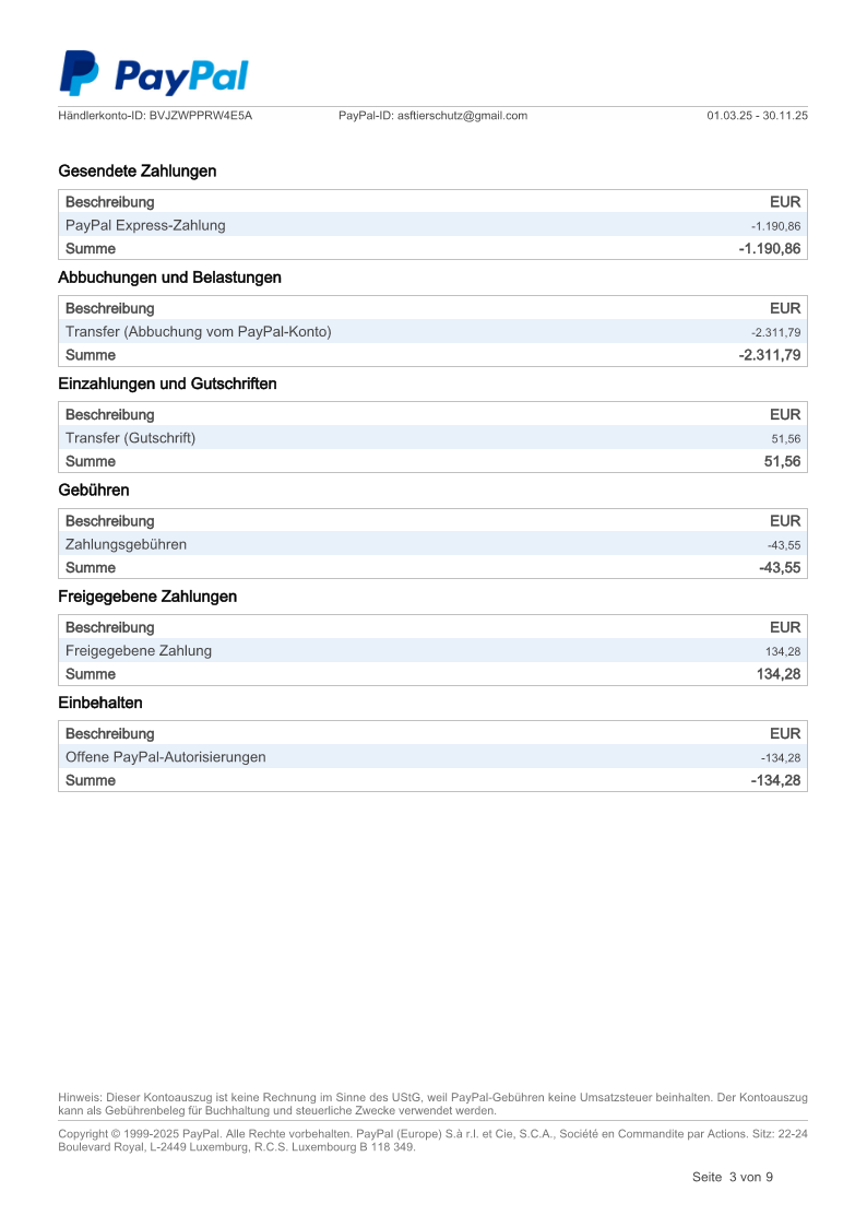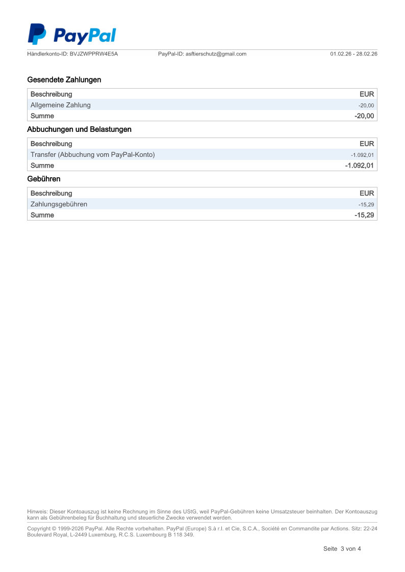 Hier könnt ihr die Ein- und Ausgänge bei PayPal nachverfolgen und somit auch wofür das Geld verwendet wurde.